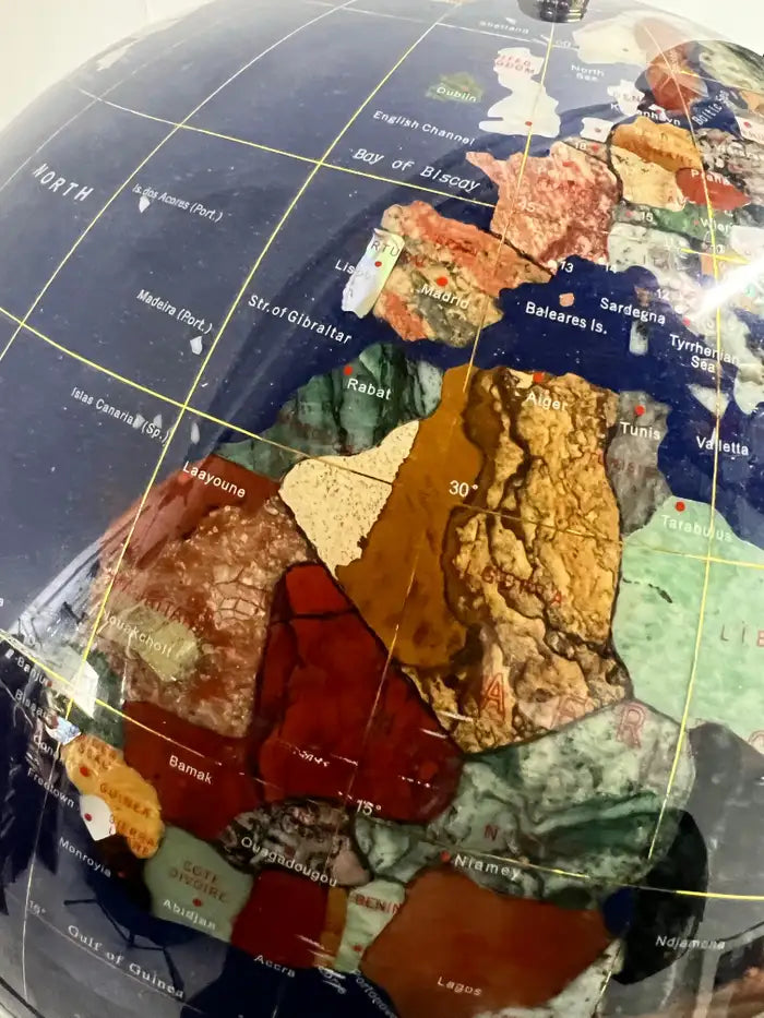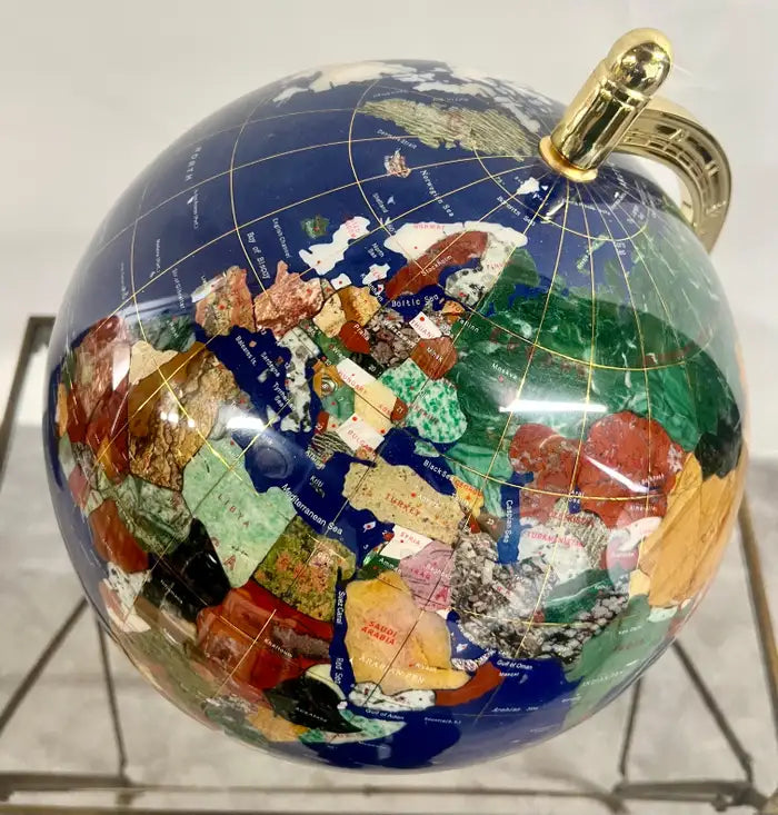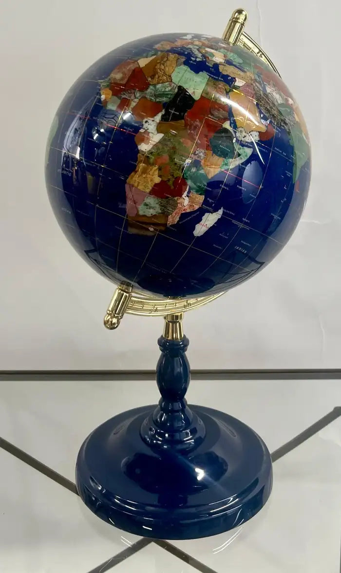 20th Century Lapis Blue Gemstone World Globe with Gilt Meridian Stand