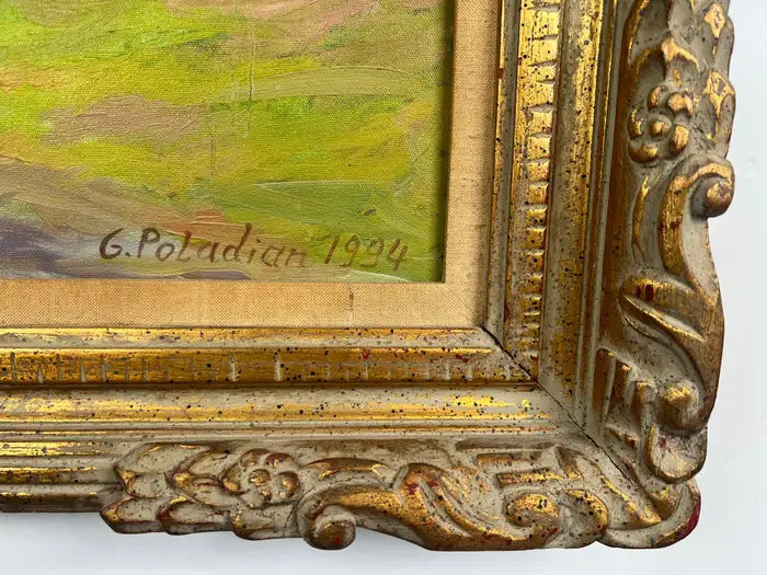 Girair Poladian Signed 1994 Landscape Oil Painting in Ornate Gilt Frame 1994