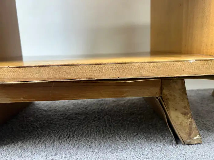 Condition: Good. Wear consistent with age and use. Minor losses. Good vintage condition with minor veneer chips and light wear consistent with age and use, primarily along the lower shelf edges as shown in the listing photos. some scratches to the wood surface. Structurally sound and presents well.