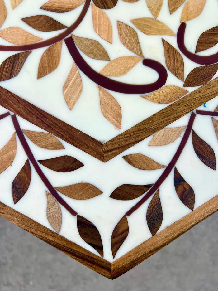 Moroccan Boho-Chic Handmade Walnut & Resin Inlay Hexagonal Side or End Table