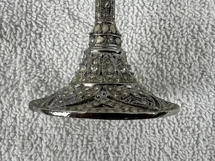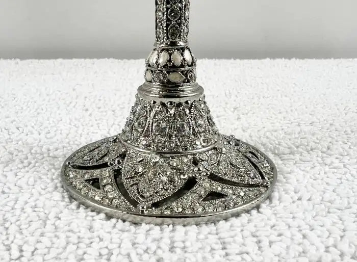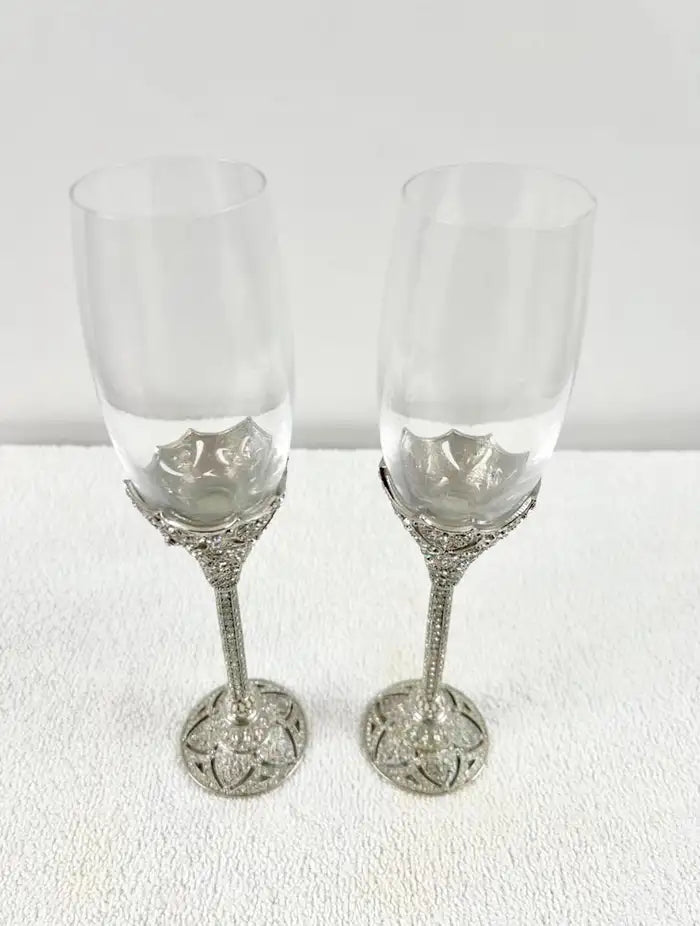 Elevate any celebration with this elegant set of Olivia Riegel Windsor champagne flutes, exquisitely designed for refined entertaining and special occasions. Each flute features a clear, slender glass bowl paired with a lavishly adorned stem, embellished with genuine Swarovski crystals arranged in an intricate, crown-like motif. The ornate detailing and brilliant sparkle evoke timeless Hollywood Regency glamour, making these flutes a striking statement for weddings, anniversaries, formal dinners, or luxury gifting. Beautifully balanced between classic elegance and contemporary sophistication, they bring a touch of opulence to any tabletop or bar setting.